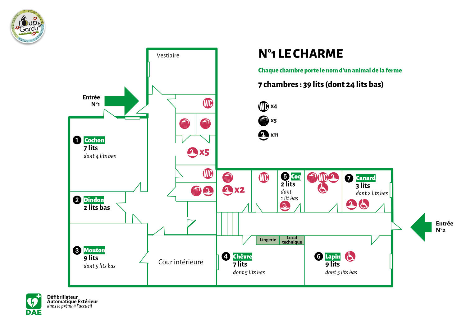 Le Charme : 7 chambres (39 couchages)