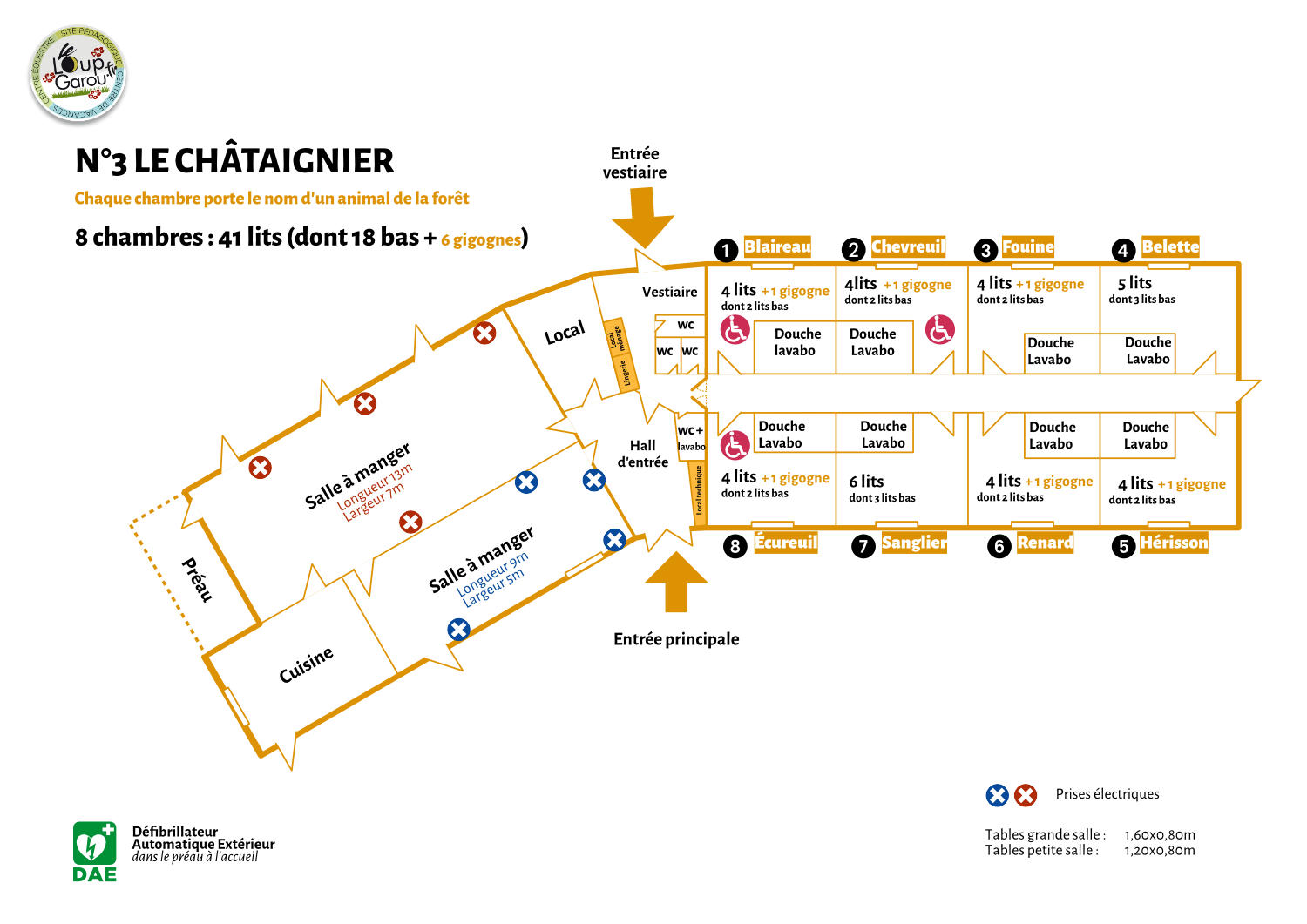 3 hébergements (Total 116 couchages)